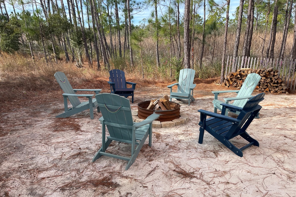 Fire pit and brand-new horseshoe pit for evening fun under the stars
