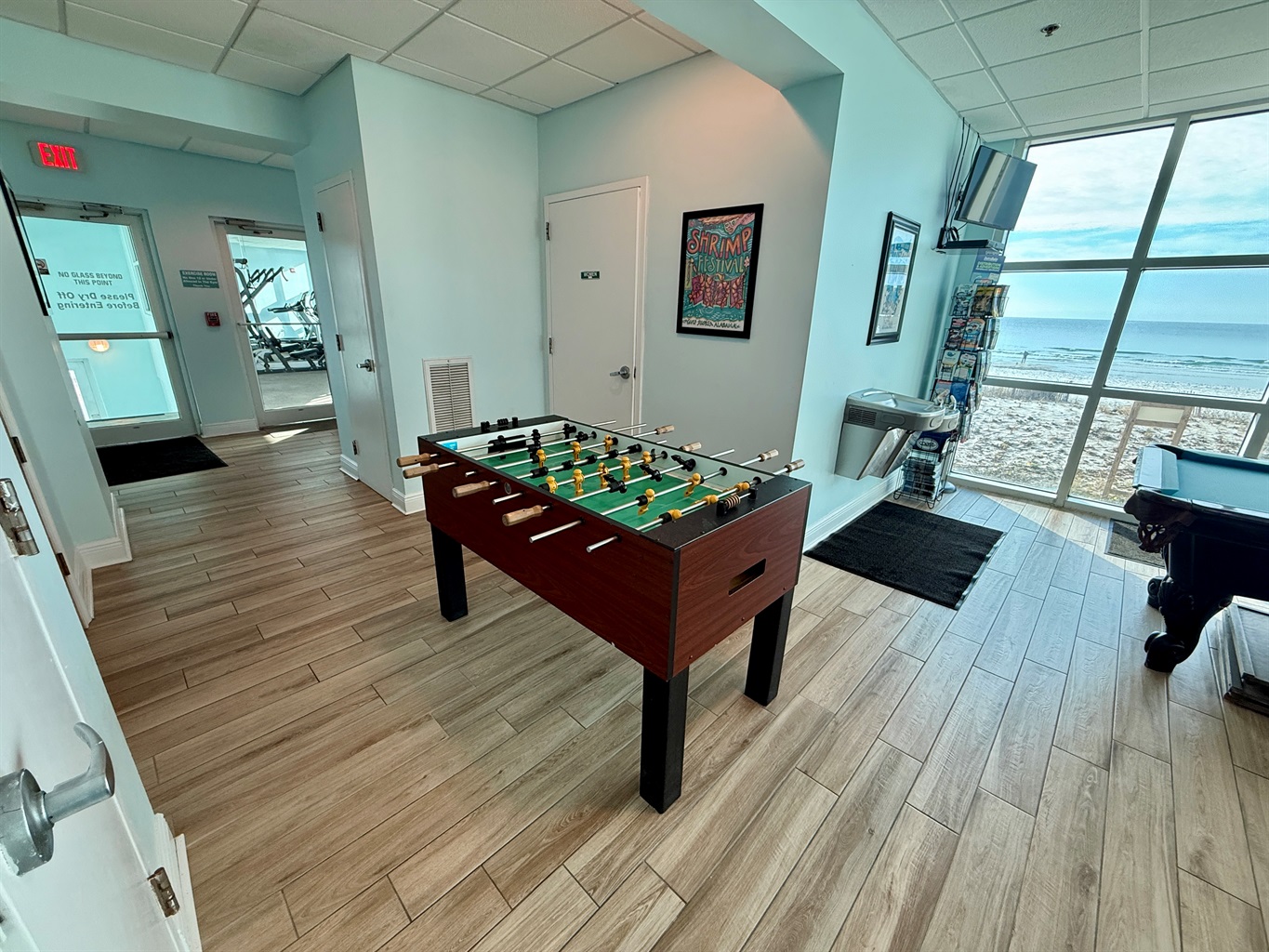 Crystal Shores West provides a wide range of amenities for guests to enjoy. The standout feature is the indoor/outdoor swim-under pool, which is heated seasonally. During the winter and early spring months, the swim-through section is temporarily closed to help retain heat in the indoor portion. Additional amenities include an outdoor hot tub, a fitness center, pool tables and a foosball table in the lobby area, and two designated charcoal grilling areas.