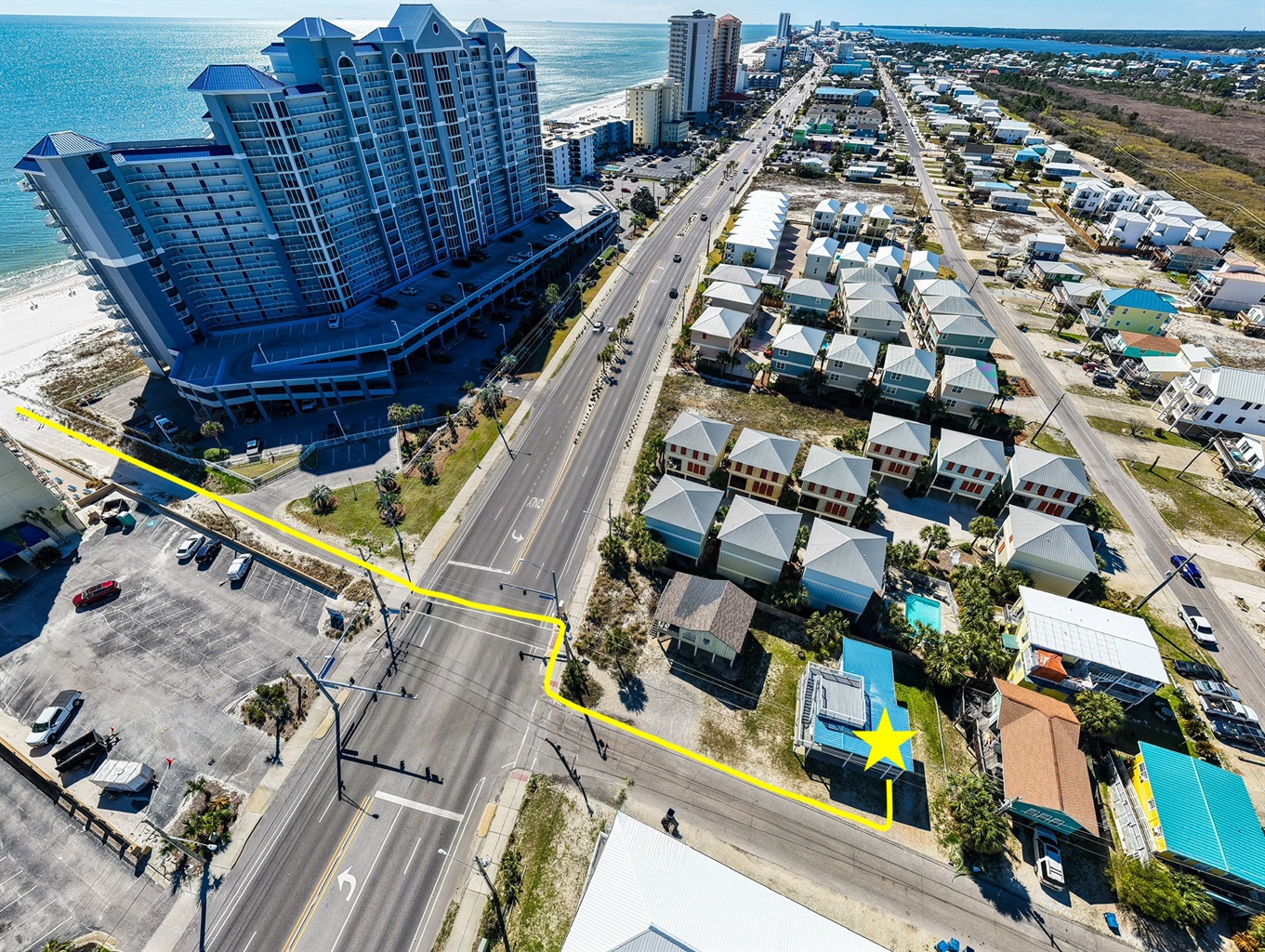 Beach access could not be easier. Simply step outside, stroll about 100 feet to the crosswalk, and head straight across East Beach Boulevard to the sugary white sands of Gulf Shores. Most guests are on the beach in under two minutes.