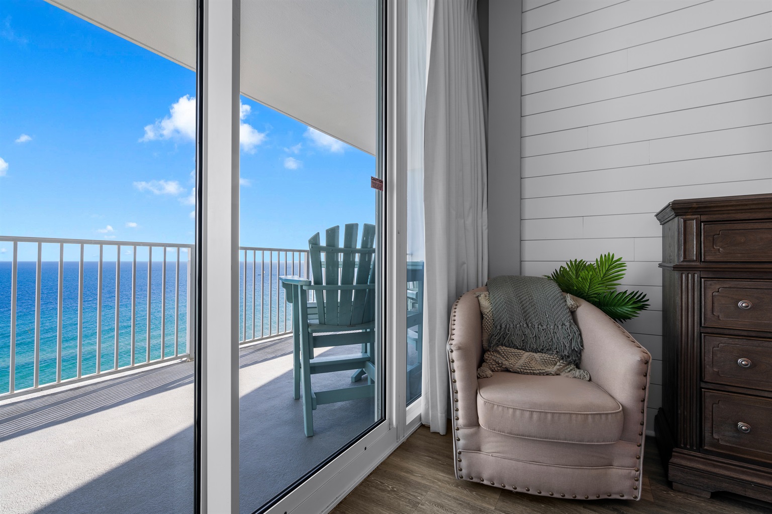 Private balcony with 14th-floor Gulf views and Polywood furniture