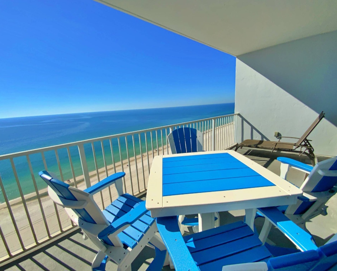 Private 16th-floor Gulf-front balcony with Polywood furniture