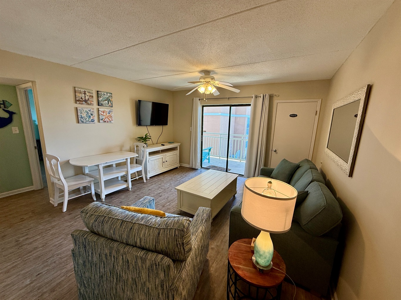 The kitchen is fully equipped with everything needed to prepare meals during your stay, and the condo includes all the essentials for a convenient beach getaway.